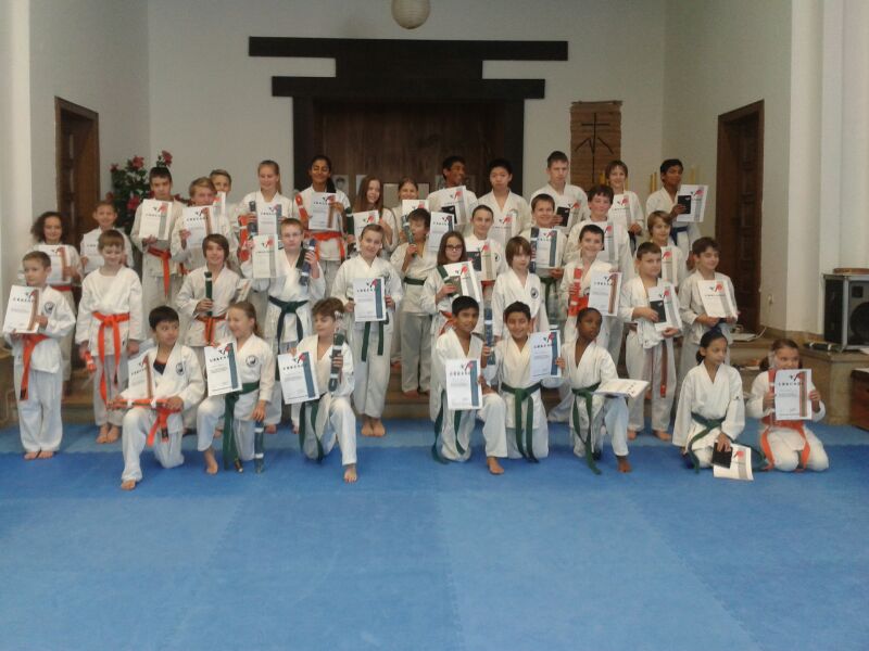 Am Ende konnten den kleinen Karatekas glücklich und geschafft ihre neuen Gürtel in Empfang nehmen.